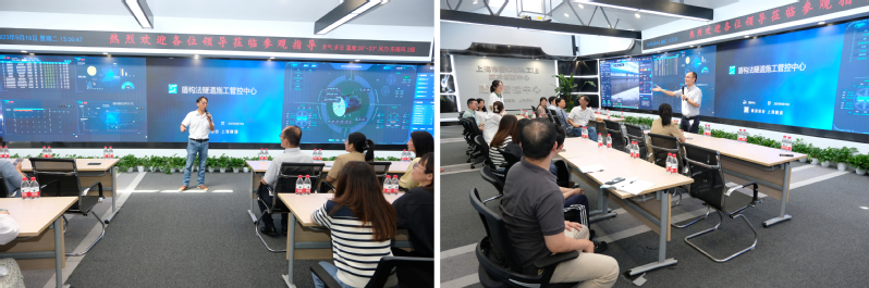 一行参观了隧道公司数字盾构管控中心并听取了盾构数字创新中心关于盾构隧道数字化管理技术的前瞻性工作介绍和城盾公司城盾隧安数字化建设工作介绍。