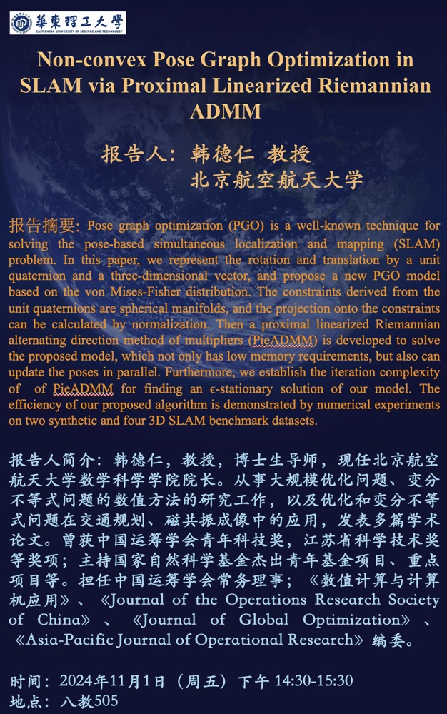 Non-convex Pose Graph Optimization in SLAM via Proximal Linearized Riemannian ADMM