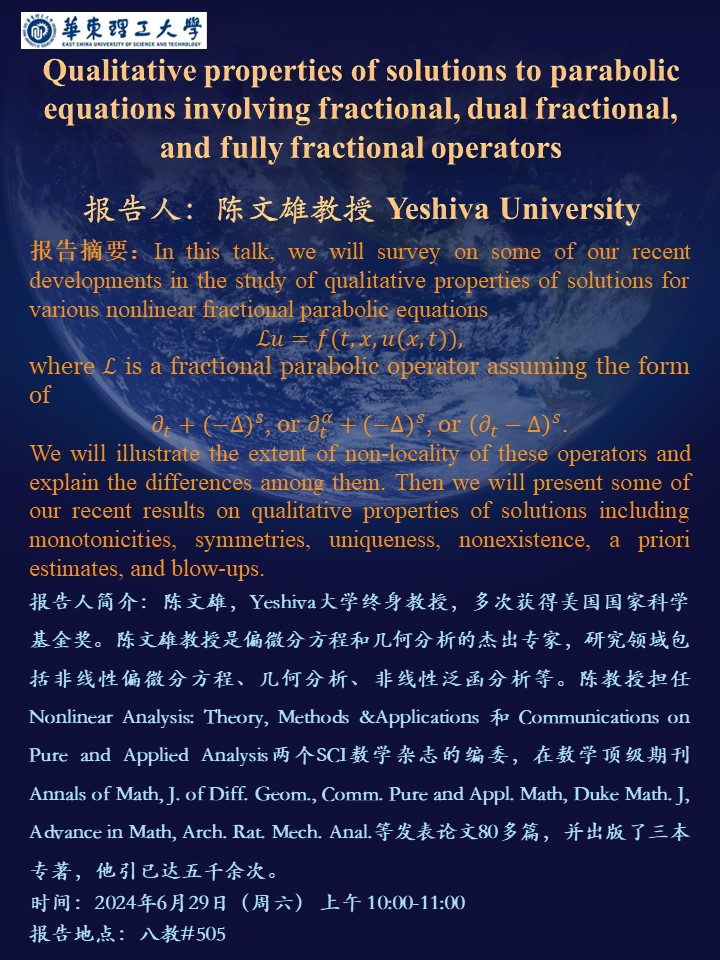 Qualitative properties of solutions to parabolic equations involving fractional, dual fractional,and fully fractional operators